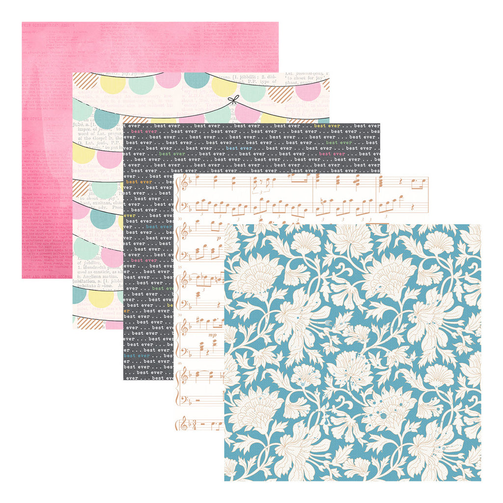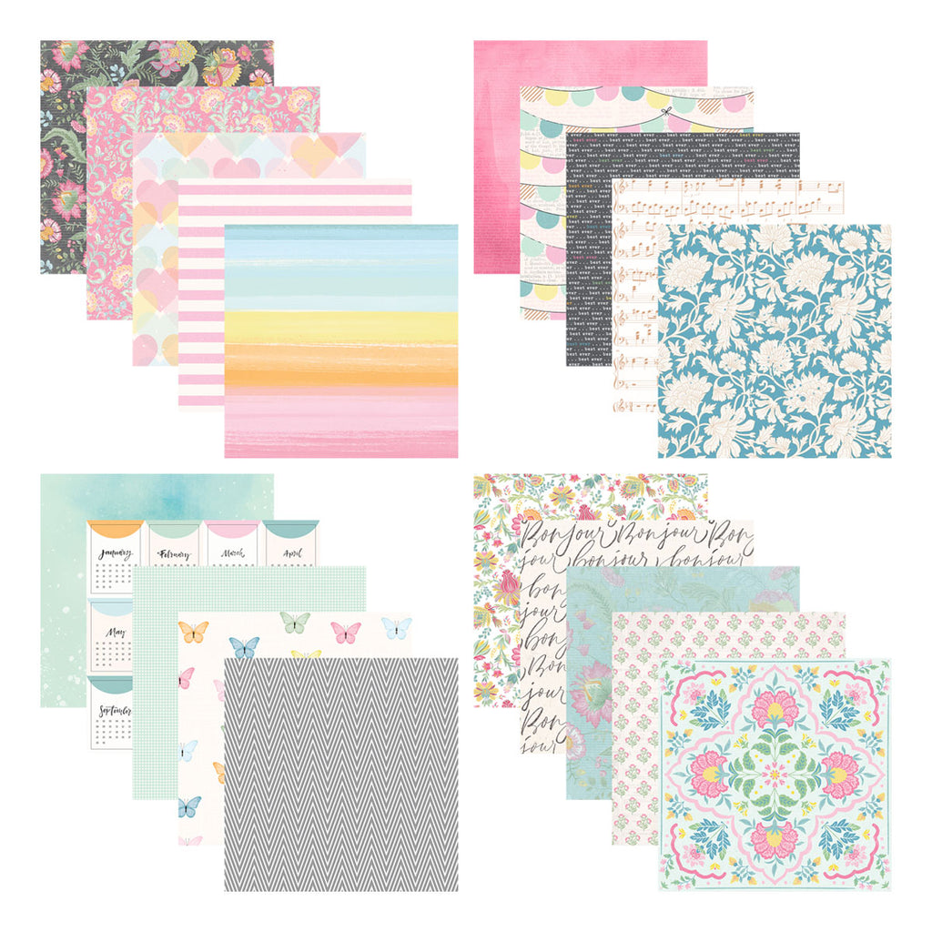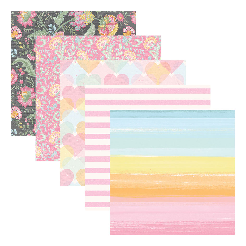 Rosie’s Studio Jubilee 6 x 6” Designer Paper Pad includes 40 sheets of acid free, 120 gsm patterned paper, in 20 designs (two sheets of each design), including designs featuring foiled accents. . Make paper creations with sweet combinations of soft tones of pinks, greens, yellows, blues and more. The patterns are accented with florals, repeat patterns and more.