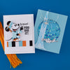 Classic Mouse Graduation Etched Dies are part of the Classic Mouse Graduation Collection. When assembled, the set of 22 thin metal cutting dies creates our favorite mouse couple gearing up for graduation with their cap and gown outfits! It also includes details like a rolled-up diploma tied up with a bow and sneakers. Add your school colors to personalize them.