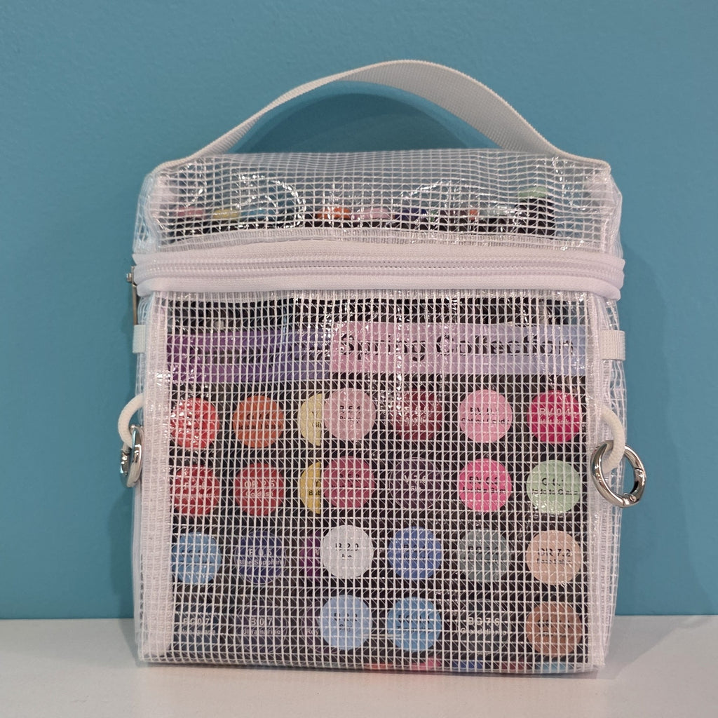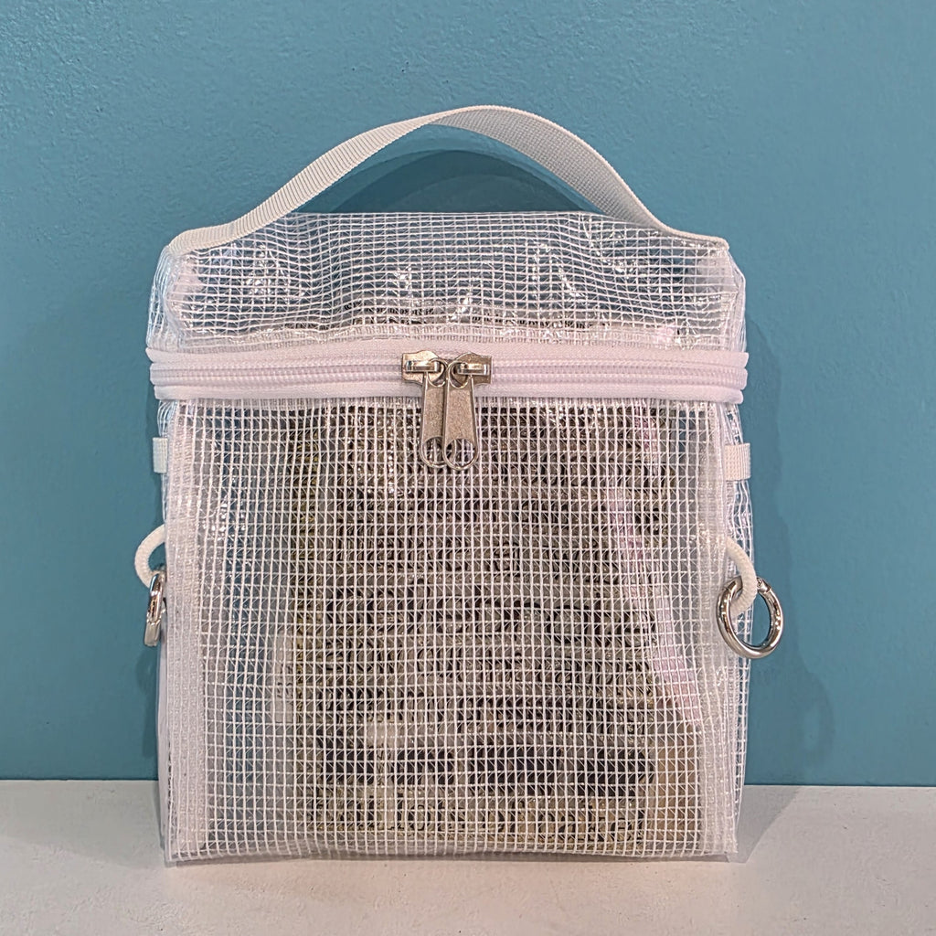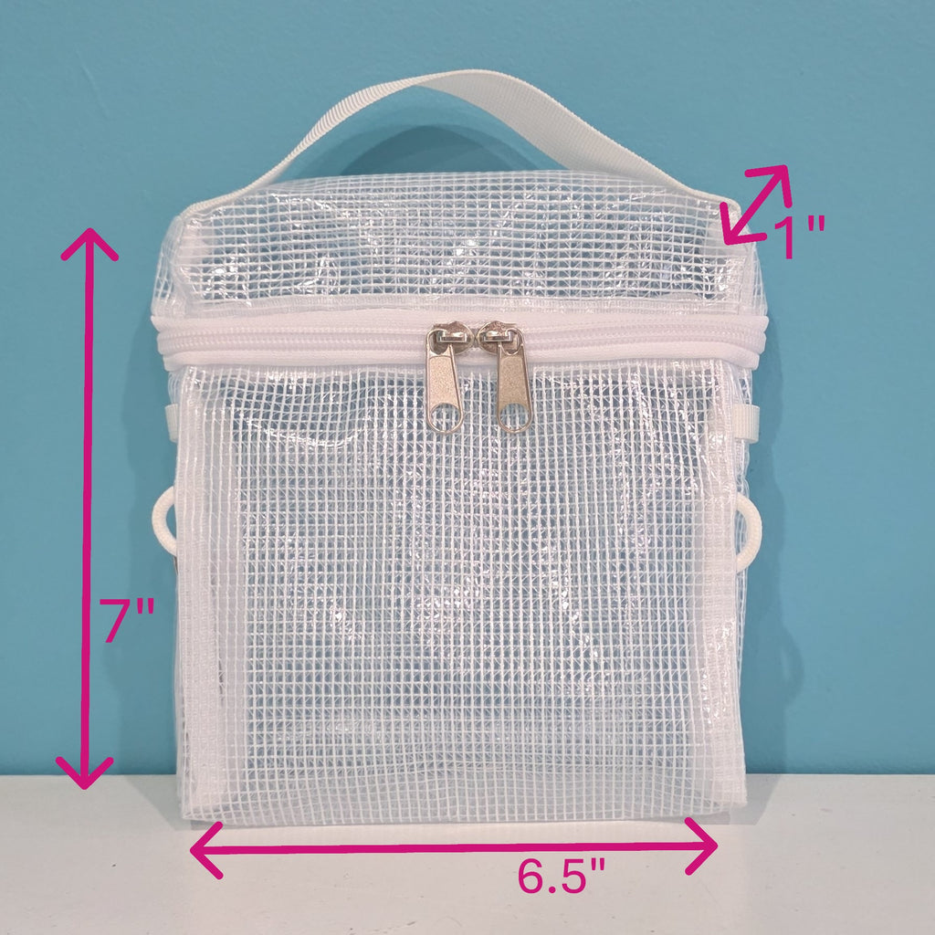 Compact, clear, and totally customizable—the Small Square Perfect Pouch is your go-to for everyday essentials. Made from our signature water-resistant fabric which is woven through with white mesh, this pouch is perfect for storing craft supplies, cosmetics, hair accessories, or anything else you need to grab and go.