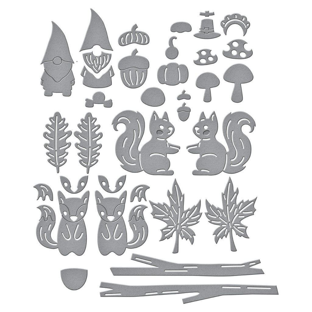 Harvest Time Etched Dies are part of the Cuckoo Cottage Collection. This set of 17 thin metal cutting dies has lots of wonderful Autumn-themed elements to accent on projects. But it works with and perfectly adorns S5-701 Cuckoo Cottage set.