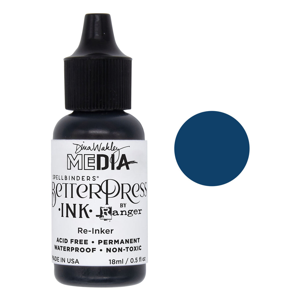 Extend the life of your Sapphire BetterPress ink pad from the Happy BetterPress Ink Mini Set by Dina Wakley with the Sapphire BetterPress Reinker. Simply add a few drops of the Reinker onto the pad and spread it evenly. Now you’re back to creating with the BetterPress Letterpress System for those stunning impressions!