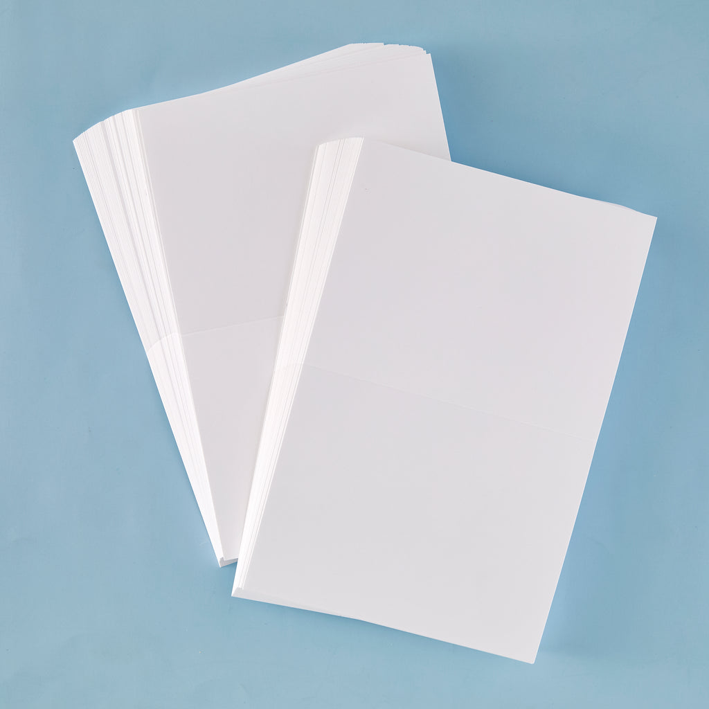 100 Bulk Pack A2 Side Fold Card Bases. This set of 100 A2 side fold white card bases is exclusively for retailers to use in classes and special programs, NOT FOR RESALE. Made from high quality Neenah 80# Cover Weight Bright White Super Smooth Cardstock, each card measures 4.25 x 5.50 in./10.80 x 14.00 cm. Does not include envelopes.