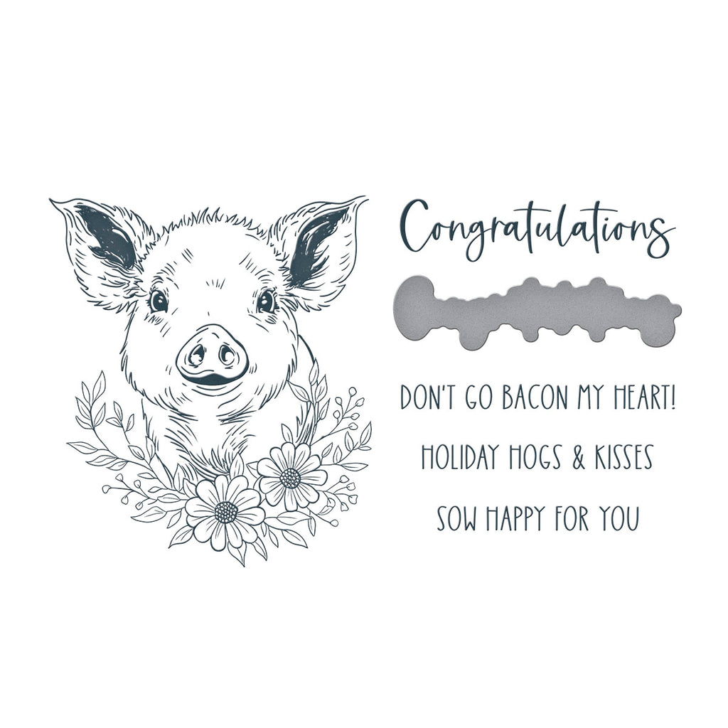 Daisy BetterPress Plate & Die Set is from the Justine's Farm Collection by Justine Dvorak. Letterpress an adorable pig named Daisy framed in a lovely floral garland! She is celebrating with the included Congratulations plate that can also be cut with its matching die. Three other sentiment plates are included as well: Don’t Go Bacon My Heart, Holiday Hogs & Kisses, and Sow Happy for You. Ink the plates with the BetterPress Ink to be pressed against the BetterPress Cotton Card Panel and Sheets for a crisp letterpress design.