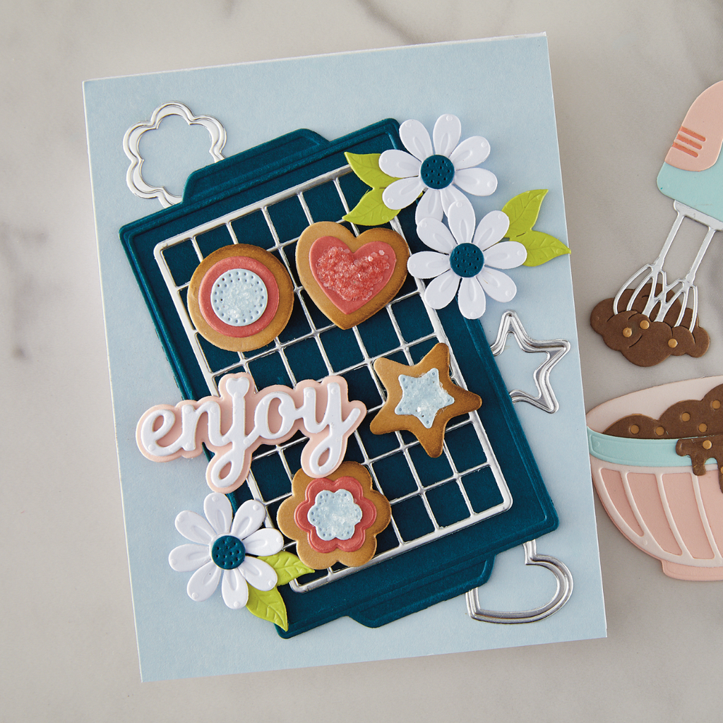 This offering from Tina Smith creates freshly baked happiness through a combination of tools, equipment, sentiments and even a sweet apron set. What project will you whisk up with the Make It & Bake It Collection?