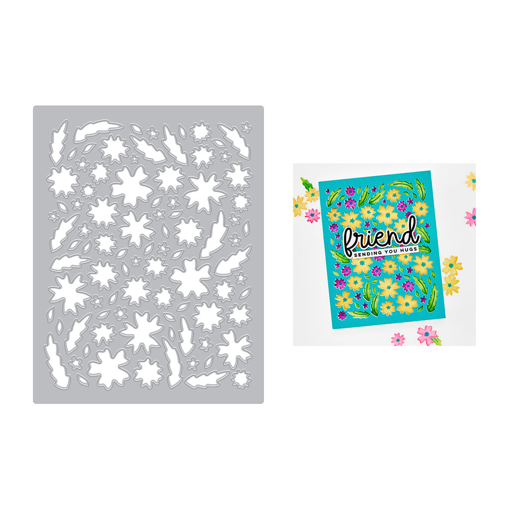 This versatile die can be used with both the positive and negative cuts - use the die-cut pieces for dimensional florals or the remaining panel as a bold background. Pair with the coordinating Bitty Floral Layering Stencils for quick and easy coloring.