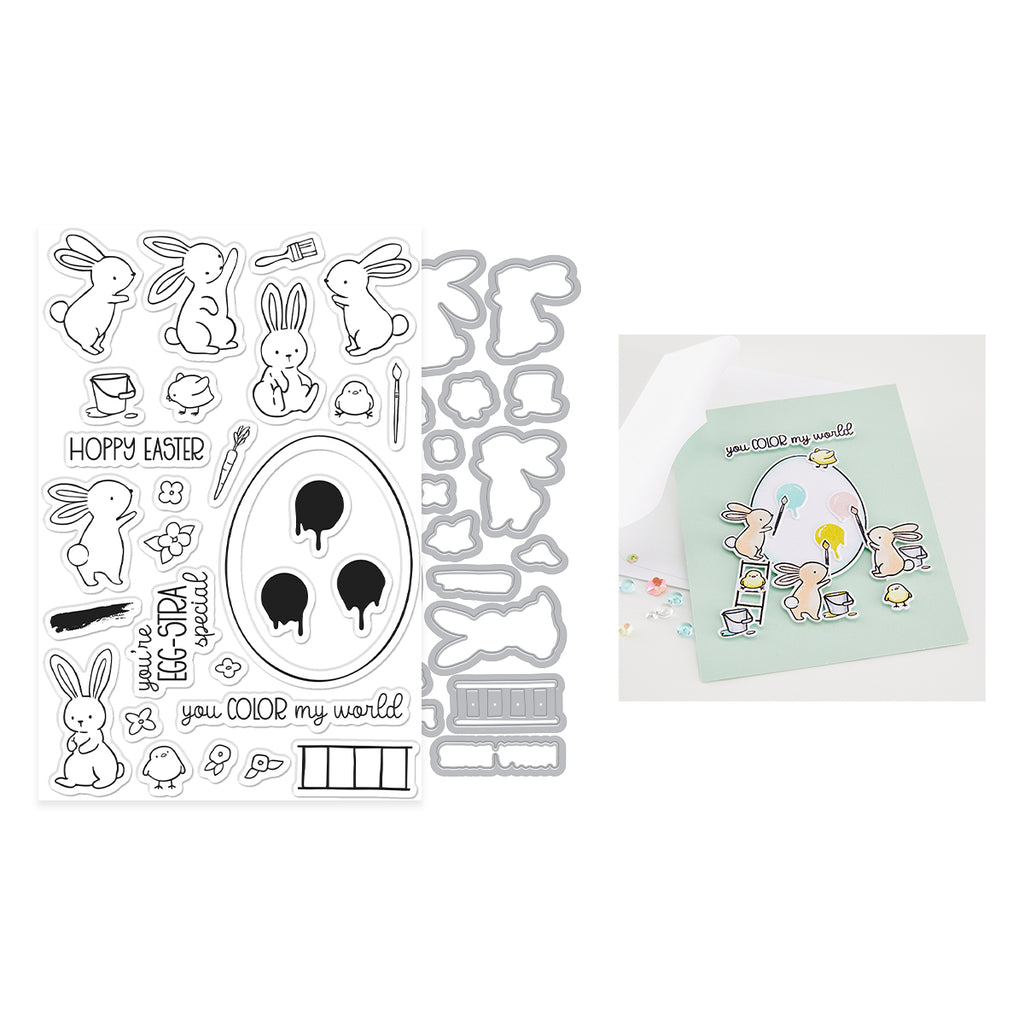 Add a splash of playful charm to your projects with the Color My World Stamp & Cut Set. This cute and whimsical set features adorable bunnies, sweet springtime details, and fun art-themed elements that come together to create charming, story-filled scenes.