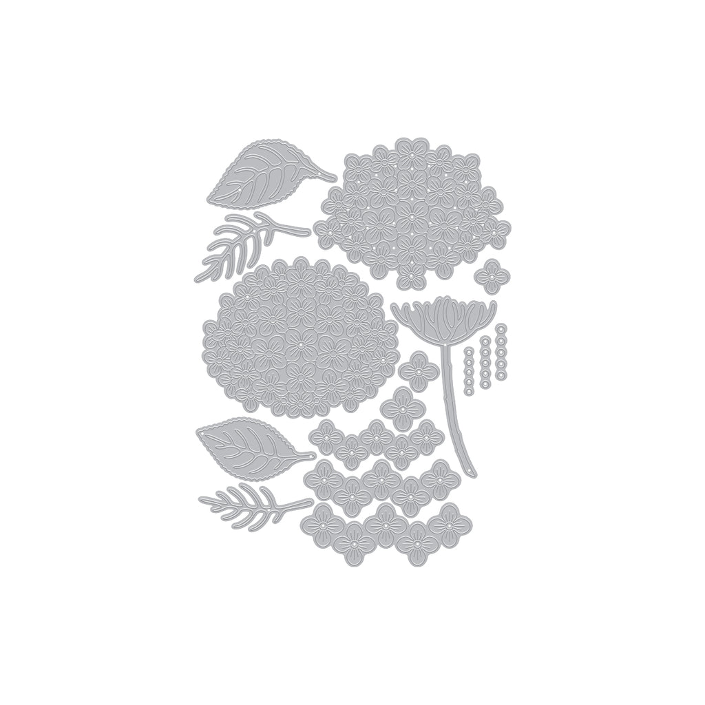 The Layered Hydrangea Die Set brings the lush beauty of these timeless flowers to your paper crafting projects. This detailed set features multiple layering dies that come together to create full, dimensional hydrangea blossoms, leafy accents, and floral sprays perfect for A2-sized cards and beyond.