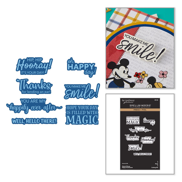 Classic Mouse Happy Sentiments Press + Foil Plate & Die Set