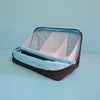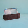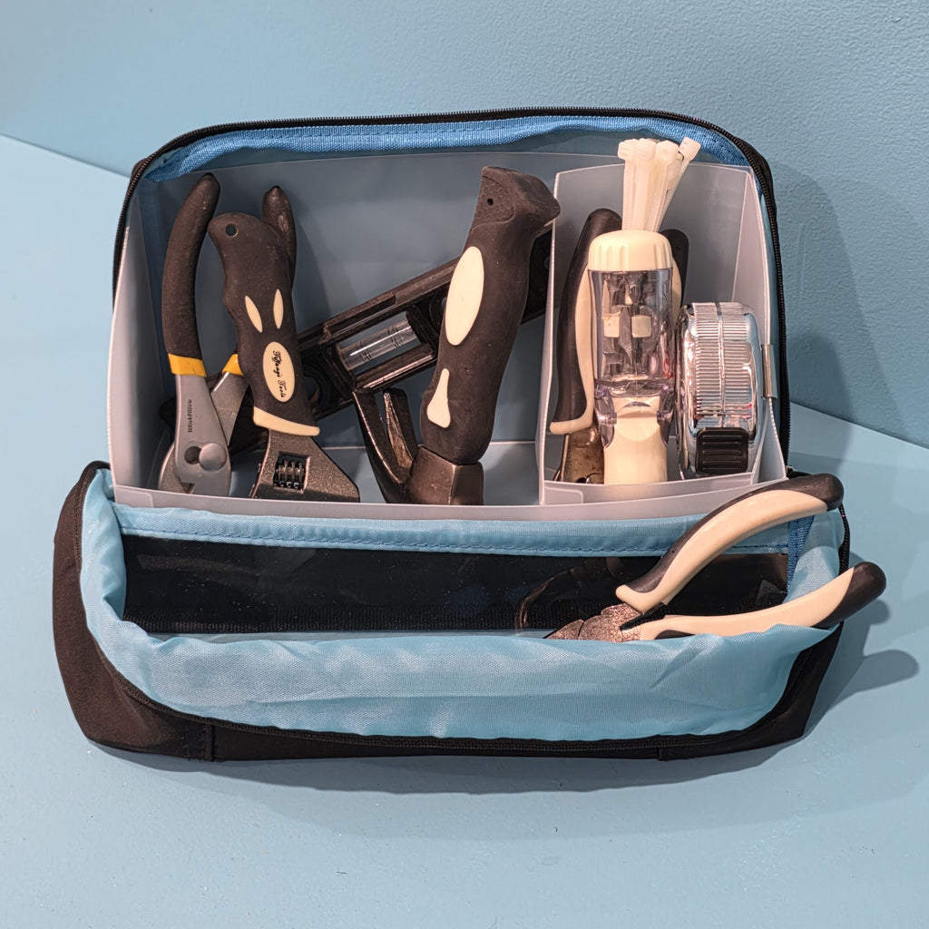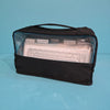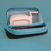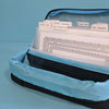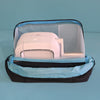 A clear front window gives you a peek inside without unzipping, while the bright blue interior adds a cheerful pop of color and makes contents easy to spot. Inside, you’ll find two structured boxes: one that fills the full tote for stable storage, and a second 3.25" wide box that can be repositioned to act as a divider or organizer for smaller items.