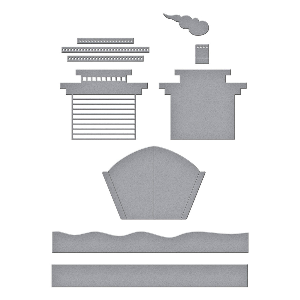 Deckside Dreams Etched Dies are part of the La Dolce Vita Collection. When assembled, this set of eight thin metal cutting dies makes a luxurious ocean cruiser with all the details you can imagine. It even has a smoke stack!