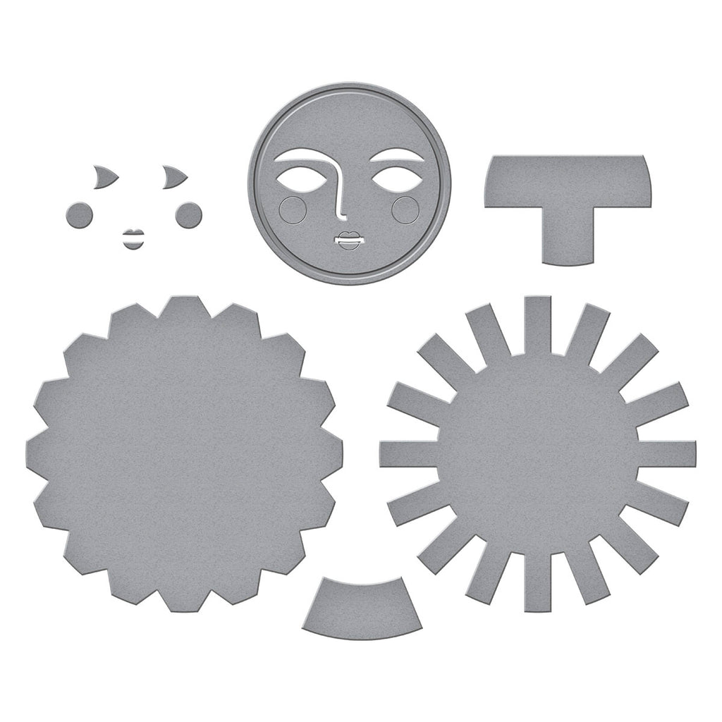 Under the Sun Etched Dies are from the La Dolce Vita Collection. The set of six thin metal cutting dies together, creates a magnificent sun shape with a wonderful facial motif to give it character!