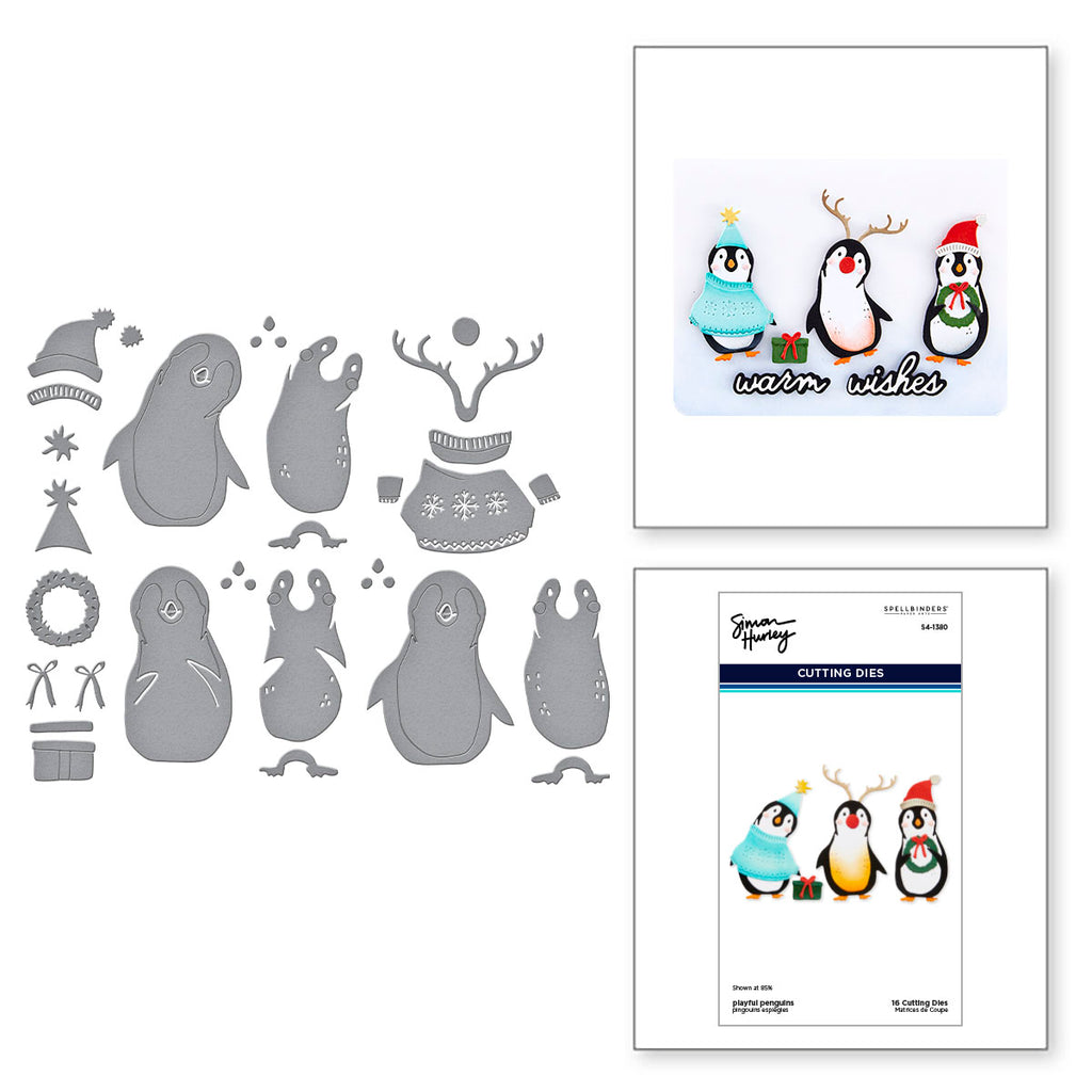 / Playful Penguins Etched Dies from the Let It Snow Collection by Simon Hurley