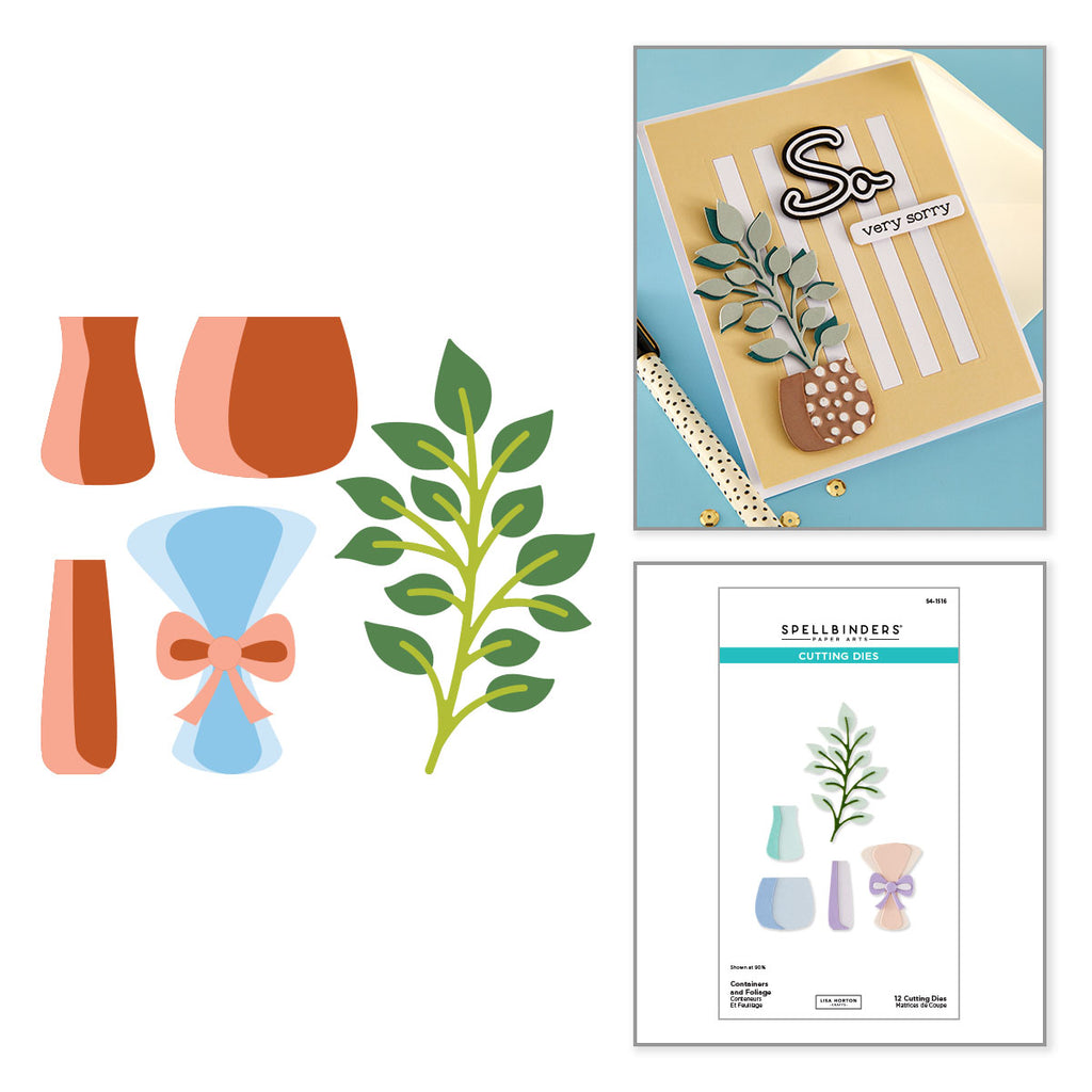 Containers and Foliage Etched Dies are from the Summertime Collection by Lisa Horton. This set of 12 thin metal cutting dies makes several containers from a wrapped bouquet to three other vases. Perfect to add flowers from S4-1515 Garden Planter Set to complete the look. An assembly guide is available for this set.