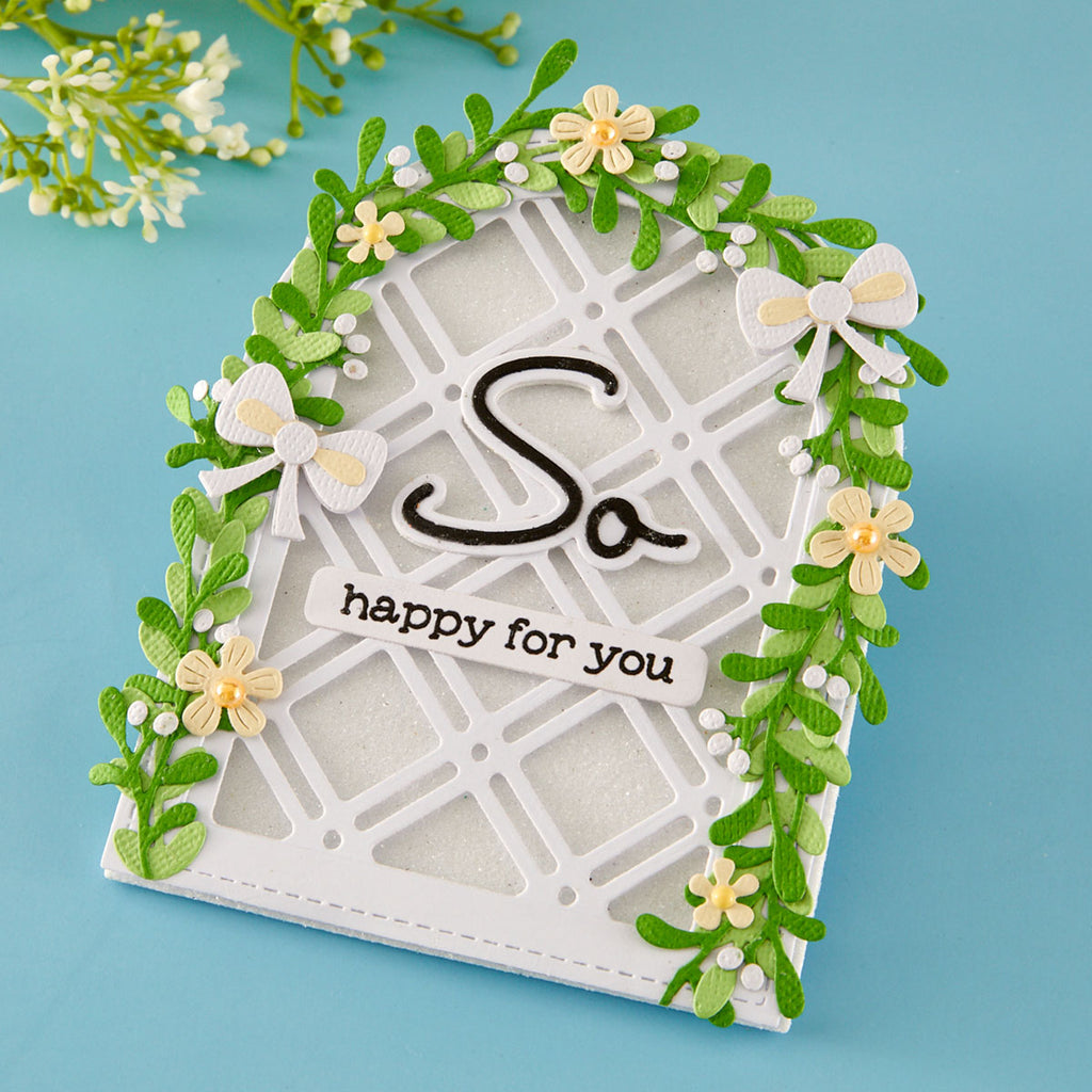Decorative Lattice Etched Dies are from the Summertime Collection by Lisa Horton. Cut a wonderful contemporary lattice pattern with this set of two thin metal cutting dies. It is a fabulous background for any project. Goes well with S5-748 Open Lace Frame and Landscapes Set to work inside the frame.