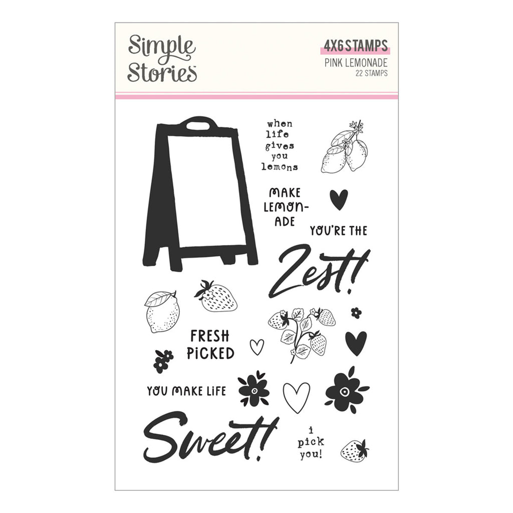 Pink Lemonade Stamp & Die Bundle includes S3-578 Pink Lemonade Coordinating Etched Dies and SS26317 Simple Stories - Pink Lemonade Clear Stamp Set. Pair them together to cut the designs perfectly to highlight them on Pink Lemonade Collection!