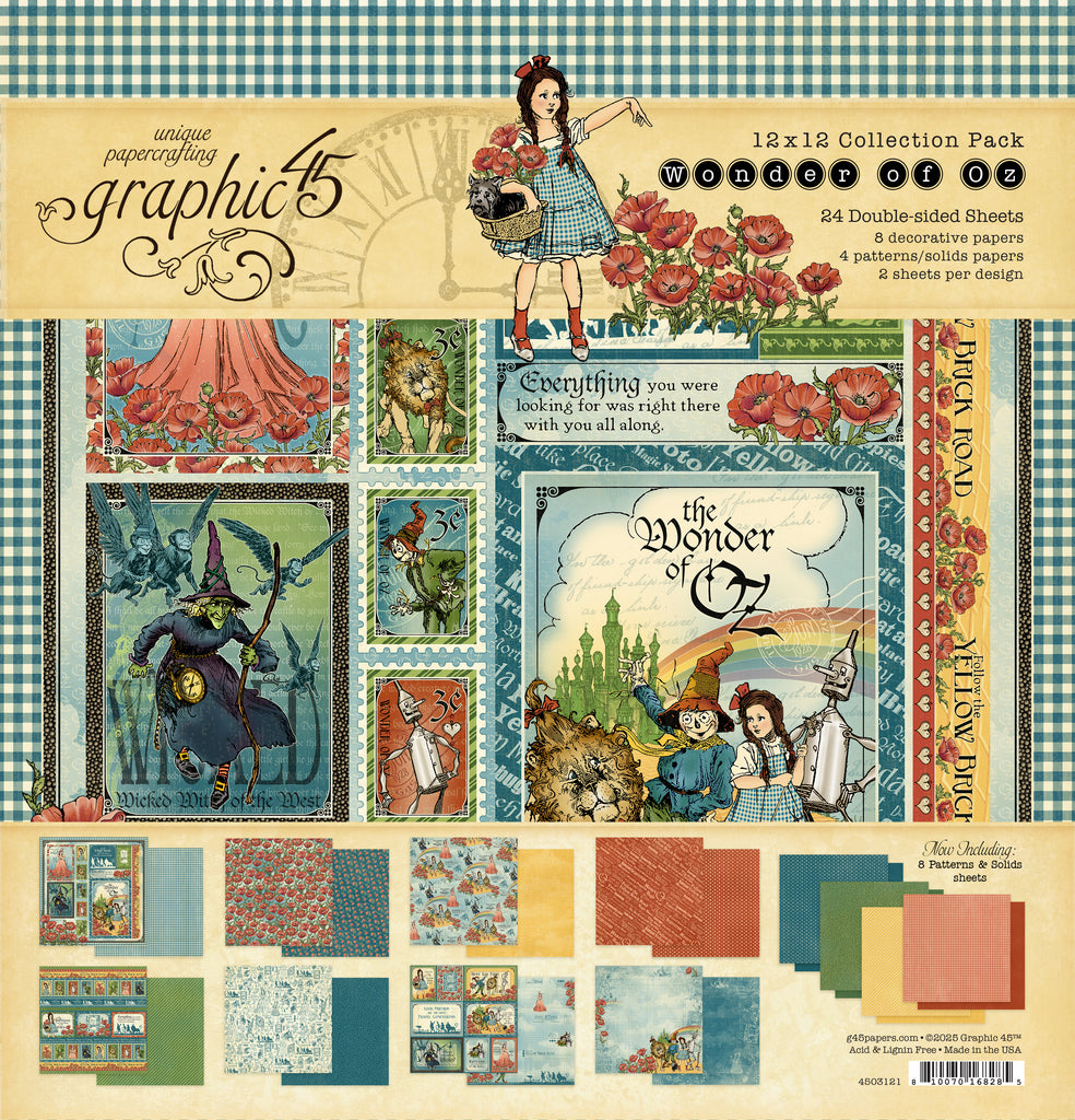 Head straight to the Emerald City with this Graphic 45 Wonder of Oz 12" x 12" Collection Pack, a set of 24 sheets of patterned papers and decorative elements. With playful storybook patterns and cut apart elements inspired by the classic novel The Wonderful Wizard of Oz, this collection pack is perfect for scrapbooks, party invitations, decorative tags, handmade cards and more.