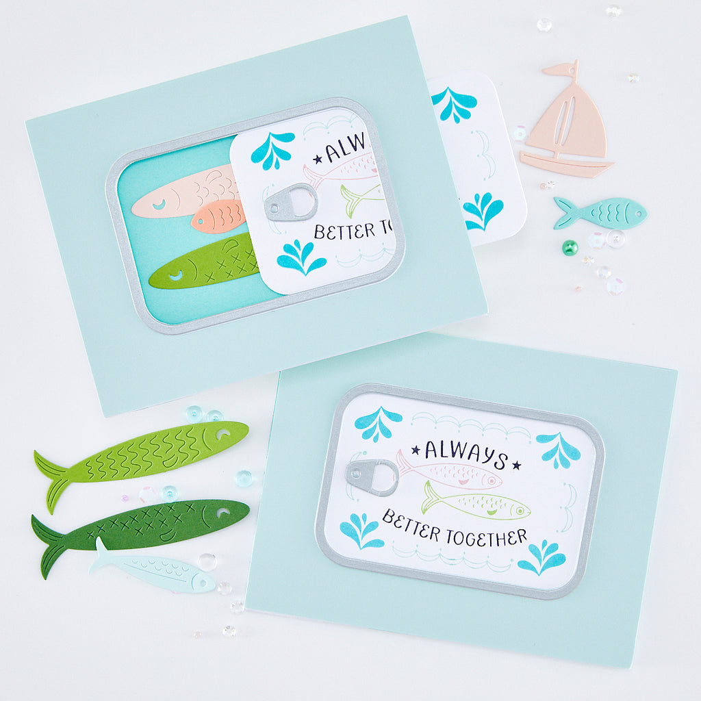The Packed with Love Big Mouth Bundle brings together the Big Mouth Sardine Tin Die Set and the Big Mouth Slider Dies in one convenient package. Create delightful interactive cards with an opening sardine tin and smooth pull-tab action—all ready to wow your recipients.