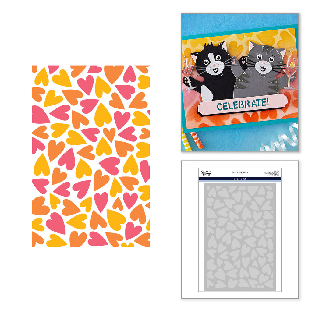 Layered Puffy Hearts Stencil is part of the Sending Hugs Collection by Simon Hurley and made of durable mylar stencil material. The three stencil sheets give detailed heart designs for a one-layer dimensional look or use medium like paste for texture. Use separately or work with E3D-163 Puffy Hearts 3D Embossing Folder to highlight its embossed areas (sold separately).