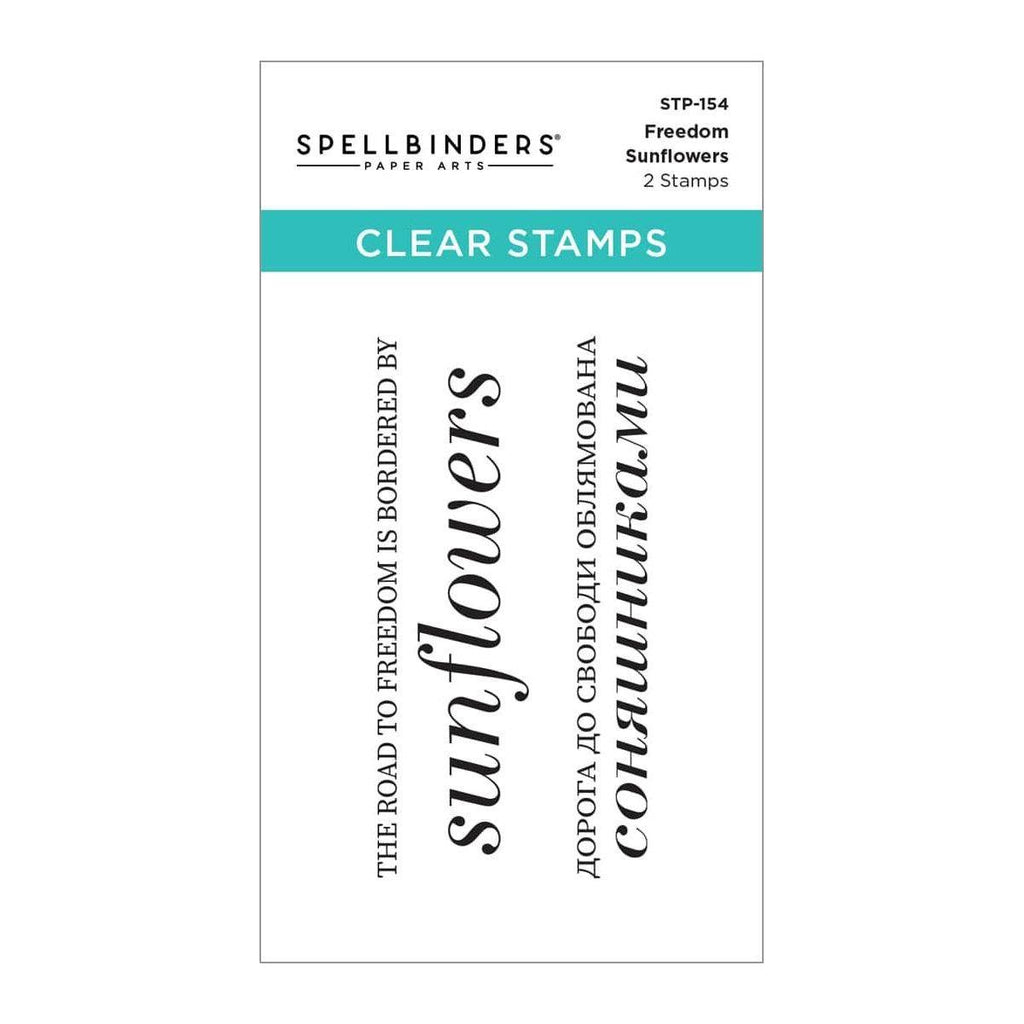 Freedom Sunflowers Clear Stamp Set includes two stamps with "The road to freedom is bordered by sunflowers" in English and Ukrainian. Support Ukraine's freedom, and make cards for the Armed Forces of Ukraine and refugees of the Ukraine invasion.