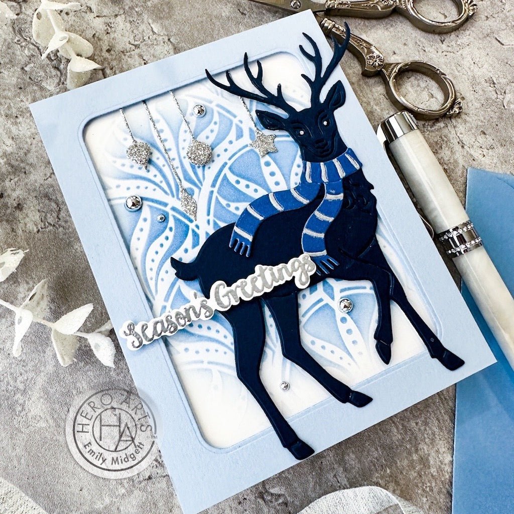 Measuring 6"x 6", Hero Arts laser-cut stencils are made of thick frosted mylar. Use a paintbrush, ink pad, dauber, or spray to transfer the design to your favorite media.
