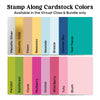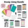 • A curated Stamp Along product bundle that includes 2 clear stamp sets, 2 stencils, 4 die sets, a cling stamp, 16 sheets of 5.5" x 8.5" cardstock, 2 mediums and a palette knife packed in a convenient 9”x12” mesh bag.