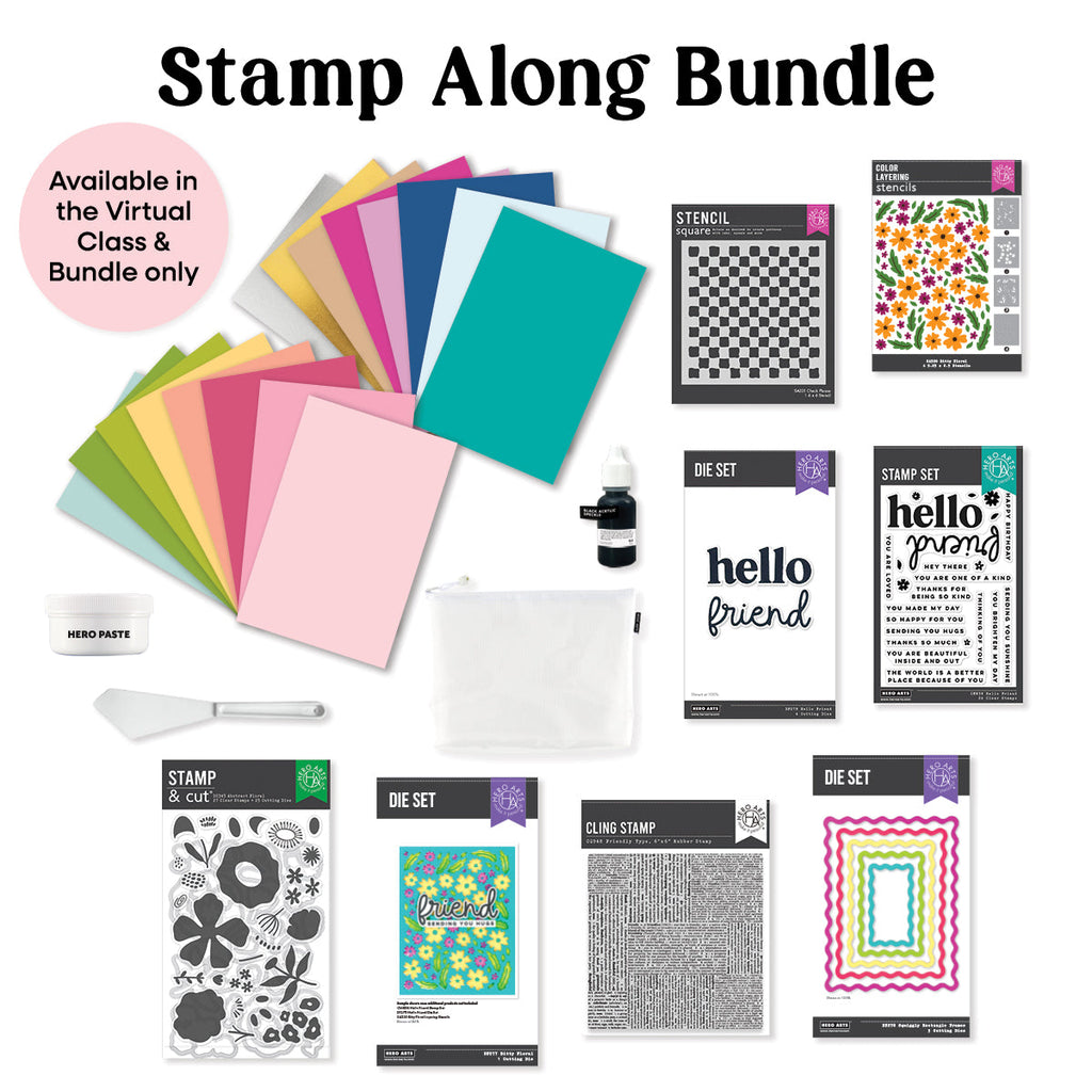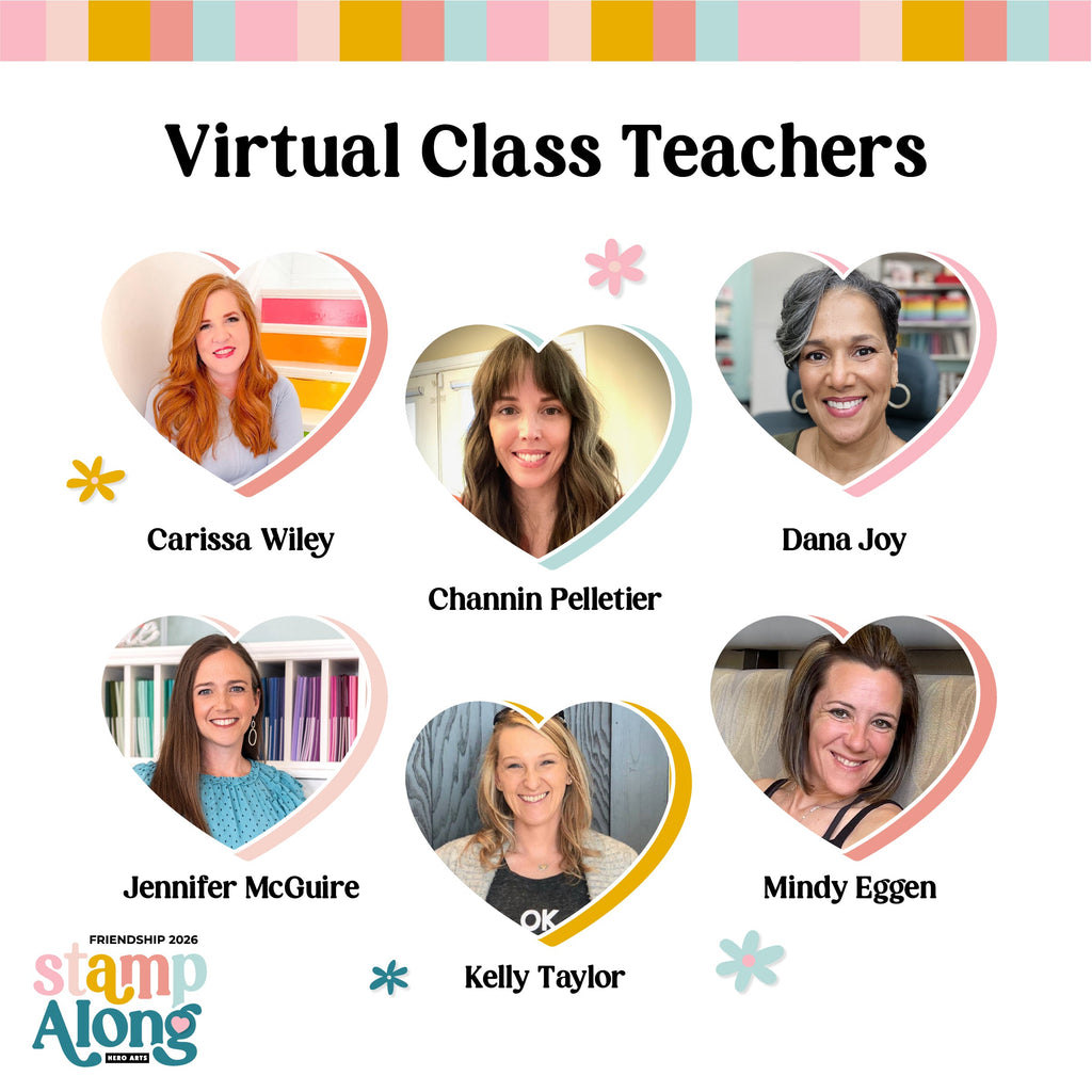 Join us for our Friendship Stamp Along on Saturday, March 7th. This one-day virtual cardmaking event is designed to bring creativity, learning, and community together. Be a part of six inspiring classes taught by a talented lineup of instructors, all centered around colorful, friendship-inspired designs. You’ll explore fresh techniques using stamps, dies, stencils, and more—while crafting alongside a welcoming community of makers from wherever you are.