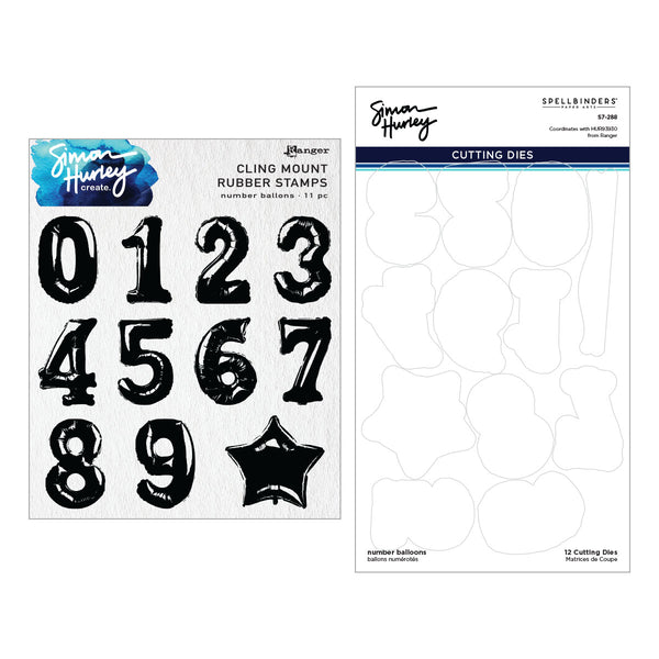 Number Balloons Cling Rubber Stamp and Die Bundle by Simon Hurley