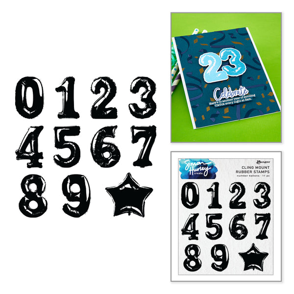 Ranger Number Balloons Cling Rubber Stamp Set by Simon Hurley create.
