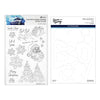 Ho Ho Ho Stamp and Die Bundle includes S7-282 Ho Ho Ho Etched Dies and HUR92087 Ho Ho Ho Clear Stamp Set. Together, the bundle stamps and cuts Santa on his sleigh, snowflakes, trees, Santa’s profile, and seven sentiments. Sentiments include Santa Claus is Coming to Town, You’re on the Naughty List, Let it Snow, Sleigh All the Way, Ho Ho Ho, Merry Christmas, and Glad Tidings to You.