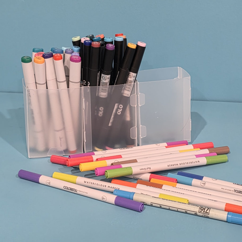 Say goodbye to toppling pencils and runaway mascara, these tall, slim Basic Boxes are designed to keep your upright items standing proud. At 4"H x 3"W x 2"D, they’re perfect for organizing desk tools like scissors, rulers, and markers, or corralling cosmetics like eyeliner, mascara, and tweezers. Whether you’re tidying up a drawer, a desktop, or a cabinet, these boxes bring vertical order to your everyday essentials.