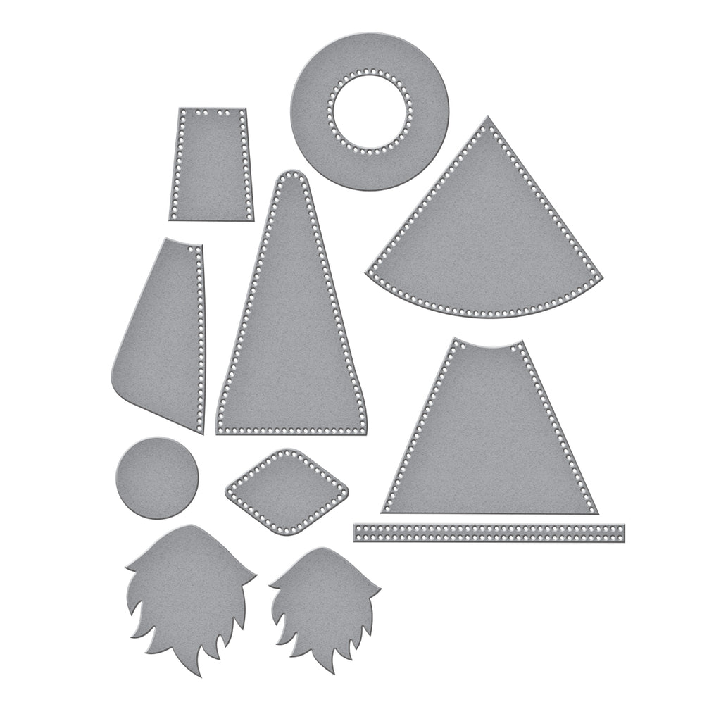 Fergus Etched Dies are part of the 3D Felt Décor Collection by Sandi MacIver. When assembled, this set of 11 thin metal cutting dies makes a wonderful dimensional Gnome! Detailed stitching design on the edges gives a wonderful, finished look and creates a guide for stitching the gnome together. Cut with our Merino Wool Felt Sheets sets to bring it to life in texture and dimension or cut in paper for an entirely different look. For more interest, add sweet tiny buttons from our embellishment section! The finished Fergus measures approximately 3.75 x 6.25 x 1.75 in./9.50 x 15.90 x 4.50 cm.