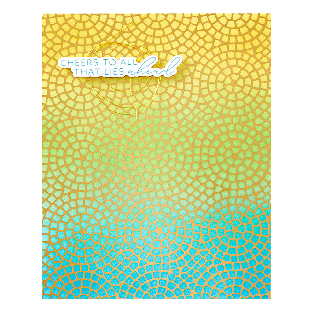 Pair this plate with the coordinating STN-107 Mosaic Path Layered Stencils to add color and vibrancy your cards. Each layer colors specific tiles, making them perfect for creating playful patterns.