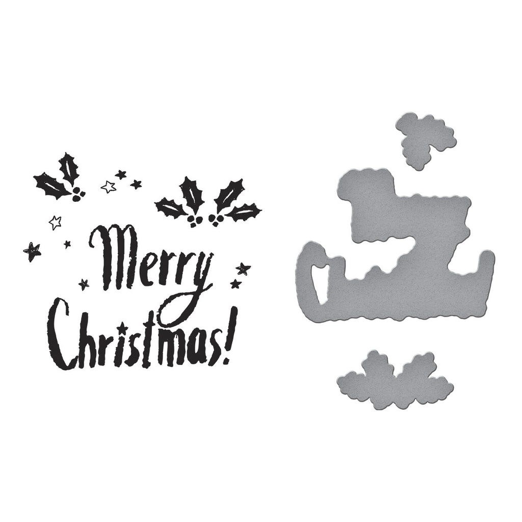 Starry Merry Christmas Registration Press Plate & Die Set is part of the Starry Holiday Collection by Dina Wakley. The set of six press plates, three thin metal cutting dies and one mylar printed registration template come together to create a bold Merry Christmas sentiment in a hand-drawn style framed with holly berries and stars. The registration template allows for perfect placement, but each of the plates can be used on their own to add extra charm to any holiday project. The included dies cut out the sentiment and the two sprays of holly leaves. The full design measures 2.55 x 2.17 in./6.50 x 5.50 cm.