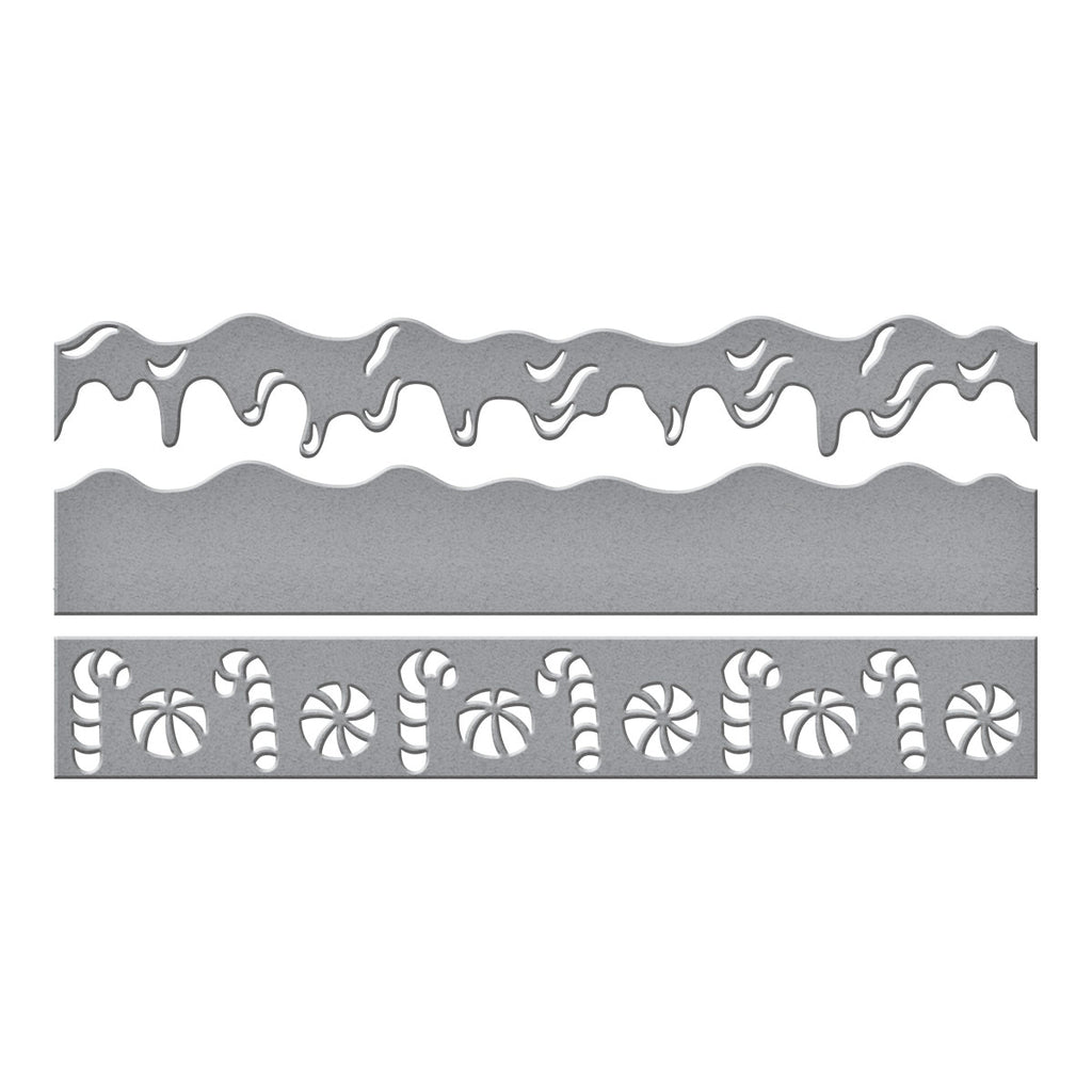 Adding extra sweetness to your projects is easy with the Sweet Borders Etched Dies by Stamperia. This set of three thin metal dies creates a selection of fun borders that are perfect for resting your candy creations on! Two layers stack together to create a dripping frosting effect, while the third creates a pattern of candy canes and peppermints.