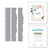 Torn Paper Edges Etched Dies are part of the Take Note Collection and include three thin metal cutting dies. Two dies create different torn edges and the third cuts a torn spiral notebook edge. All three dies fit an A2-size card front but can be extended for a longer edge. Each finished border measures approximately 0.25 x 6.00 in./0.64 x 15.24 cm.